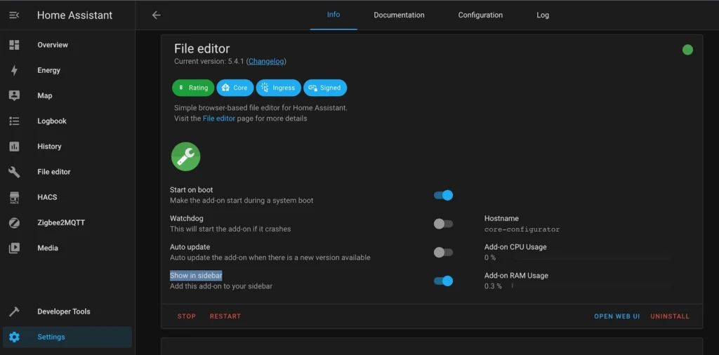 Install the Add-ons, and allow “Start on boot” and “Show in sidebar” options for more suitable use.Â