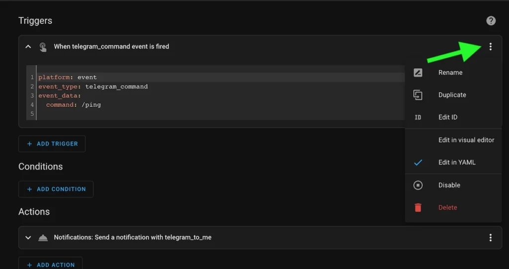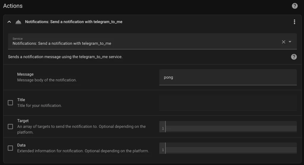 Save your automation and try to send /ping commands to your bot. As a result, you should have a very sensefull dialog with your home assistant :)))))