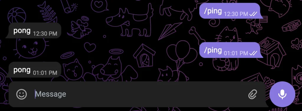 message: pong The direct notification channel is used because user should ask “ping” directly and receive direct answers in personal chat.