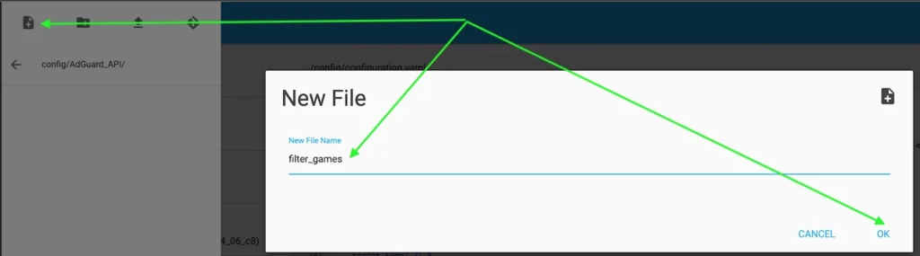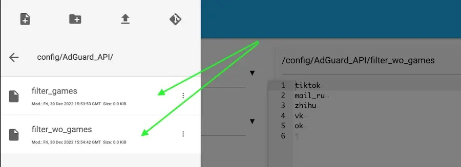 Open “File editor” and create “AdGuard_API” folder for placing files with filters and script: