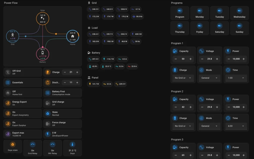 In this article, I describe how to integrate Deye hybrid inverter with Home Assistant using the following integrations: