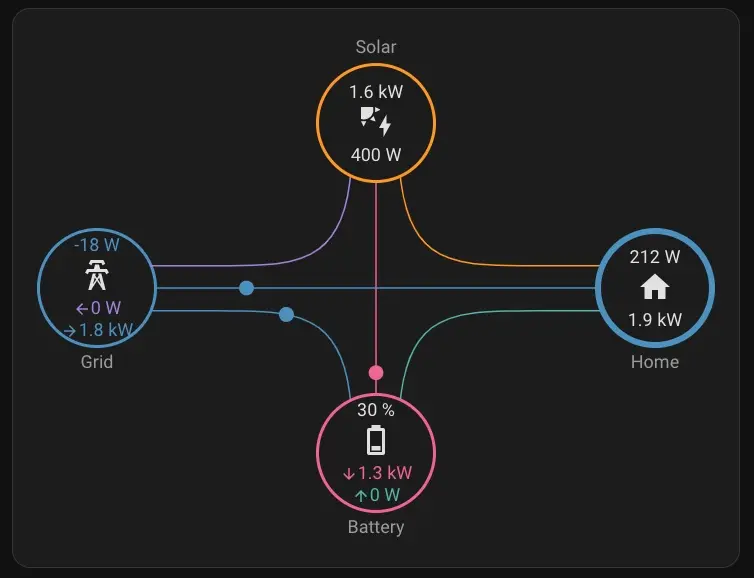As you can see, 5W is still being drawn from the grid, even though the solar panels are producing sufficient power.