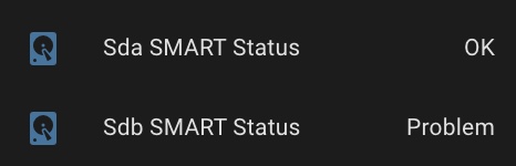 Check if you have SMART Status entities for your SDD/HDD e.g. “Sda SMART Status”.